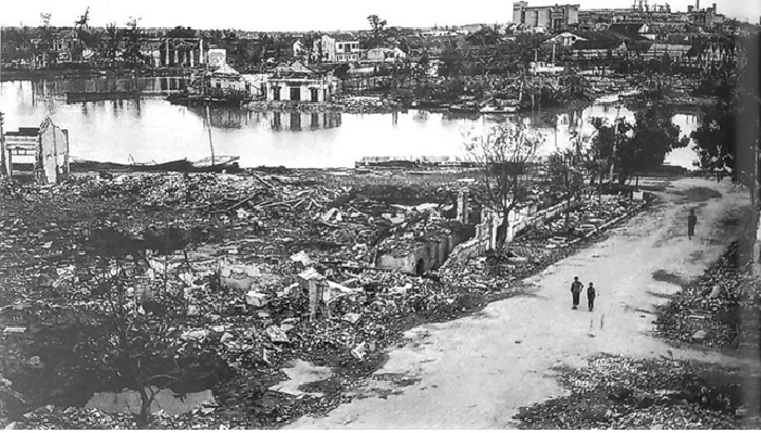 Khu dân cư tại Thượng Lý (Hồng Bàng, Hải Phòng) bị máy bay B-52 ném bom ngày 16/4/1972. (Ảnh: TTXVN).