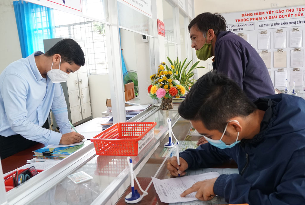 Thực hiện Chỉ thị số 05-CT/TW, chuyên đề năm 2022, TP.Tân An đổi mới tư duy, sửa đổi lối làm việc, nâng cao tinh thần trách nhiệm, thái độ phục vụ nhân dân (Trong ảnh: Công chức bộ phận "một cửa" phường 6, TP.Tân An hướng dẫn thủ tục hành chính cho người dân)