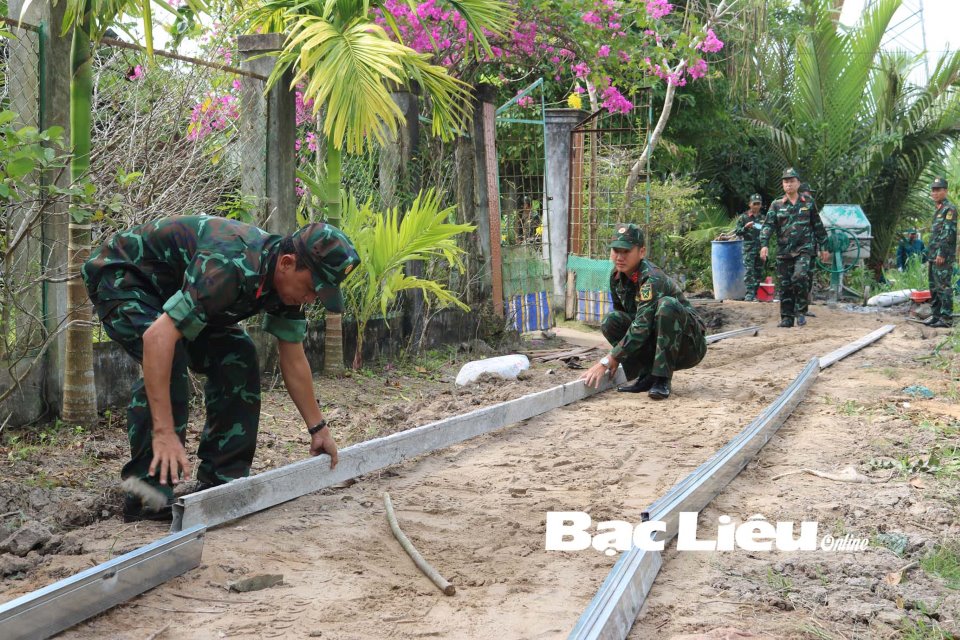 Lực lượng vũ trang tỉnh xây dựng lộ nông thôn ở huyện Hồng Dân. Ảnh: T.H