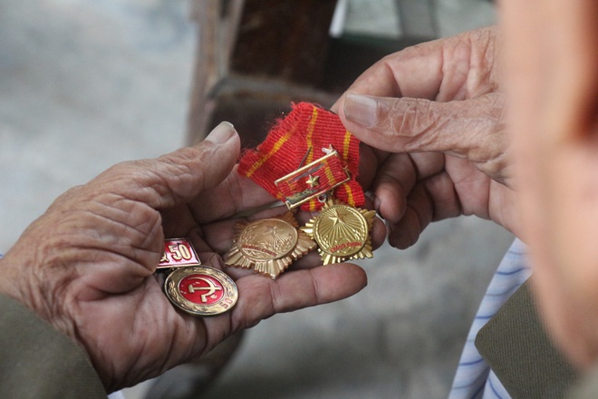 Cụ Anh xúc động khi nhớ lại ký ức hào hùng, những ngày chiến đấu và chiến thắng.