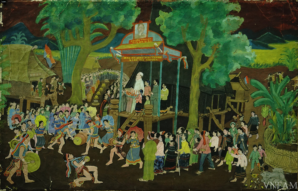 Nhiều sự kiện trong cuộc đời Chủ tịch Hồ Chí Minh được các họa sĩ thể hiện trong những bức vẽ giản dị, chân thành nhưng giàu tình cảm và tính biểu đạt cao. Từ những hình ảnh gợi nhớ về thời niên thiếu của Bác như Cậu Coông học khai tâm, Mẹ Loan và cậu Coông (Bột màu, cả hai bức đều do họa sĩ Văn Giáo vẽ năm 1971), cho đến những năm tháng Bác ra đi tìm đường cứu nước: Luận cương đến với Bác Hồ (Áp phích, Nguyễn Minh Thông), rồi sự kiện trọng đại Bác Hồ đọc tuyên ngôn độc lập (Bột màu, Nguyễn Dương).