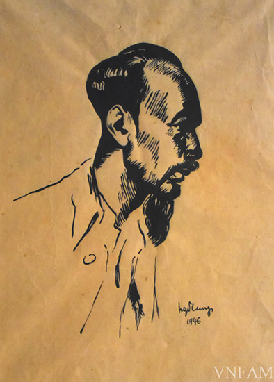 Những bức vẽ chân dung Bác Hồ là điểm nhấn nổi bật của triển lãm online này. Một trong những bức vẽ hiếm hoi mà công chúng được chiêm ngưỡng tại triển lãm là Chân dung Hồ Chủ tịch được vẽ bằng mực năm 1946 của một trong những danh họa Việt Nam: Họa sĩ Nguyễn Đỗ Cung, và một bức chân dung Hồ Chủ tịch khác in màu của họa sĩ Thế Vinh thực hiện năm 1949.