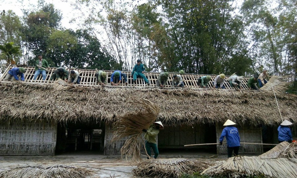| Khu di tích Kim Liên tổ chức lợp lại mái tranh lá mía cho các di tích ở khu vực Làng Sen và làng Hoàng Trù. Ảnh: khuditichkimlien.gov.vn |