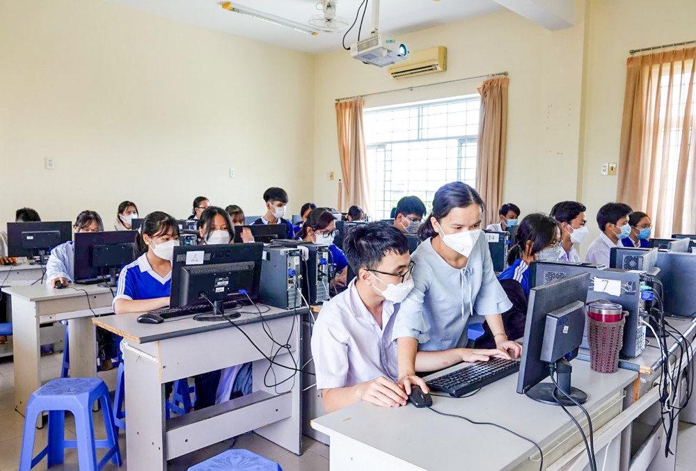 Giờ học thực hành tin học của học sinh Trường THPT Bùi Hữu Nghĩa.