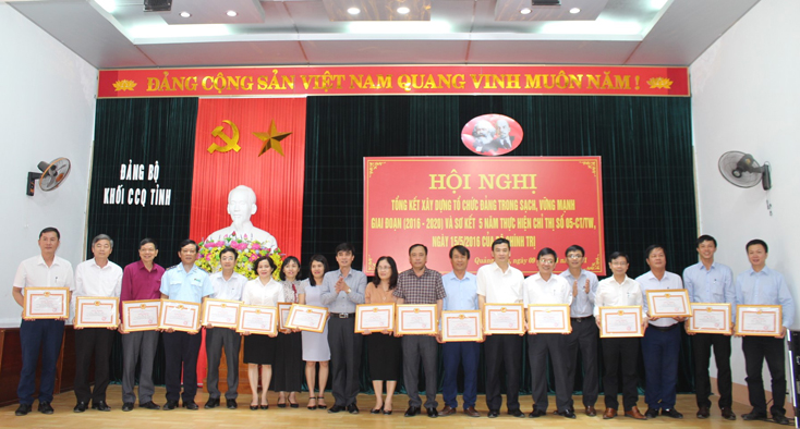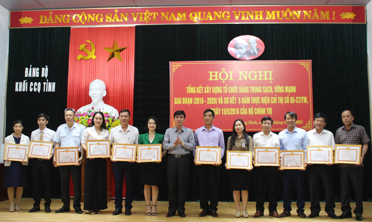 Lãnh đạo Đảng ủy Khối Các cơ quan tỉnh tặng giấy khen cho các cá nhân có thành tích xuất sắc trong việc thực hiện Chỉ thị số 05-CT/TW của Bộ Chính trị.