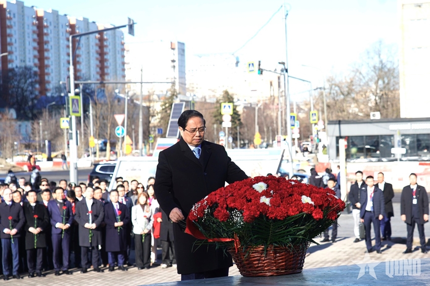 Trong khuôn khổ chuyến thăm chính thức Liên bang Nga theo lời mời của Thủ tướng Nga Mikhail Mishustin, sáng 23-3 (giờ địa phương), Thủ tướng Phạm Minh Chính và đoàn đại biểu cấp cao Việt Nam tới đặt hoa tại Quảng trường Hồ Chí Minh và Tượng đài Liệt sĩ vô danh, Thủ đô Moscow.