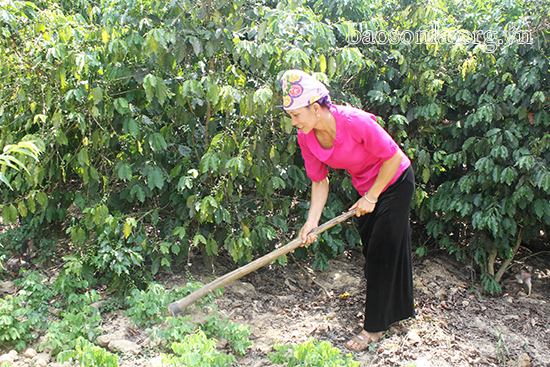 Hội viên chi hội phụ nữ bản Pặt Pháy, xã Dồm Cang, huyện Sốp Cộp chăm sóc diện tích cà phê.