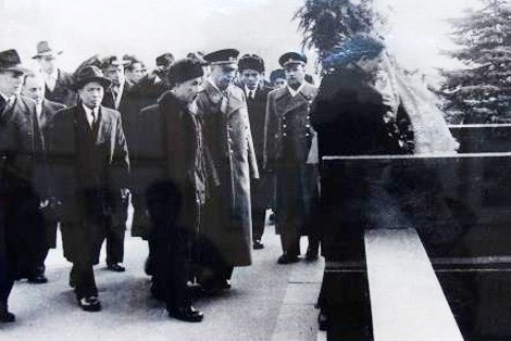 Chủ tịch Hồ Chí Minh cùng Đoàn đại biểu Đảng và Chính phủ Việt Nam vào Lăng viếng lãnh tụ Lênin trong dịp Đoàn sang dự lễ kỷ niệm 40 năm Cách mạng Tháng Mười Nga, năm 1957. (Ảnh tư liệu)
