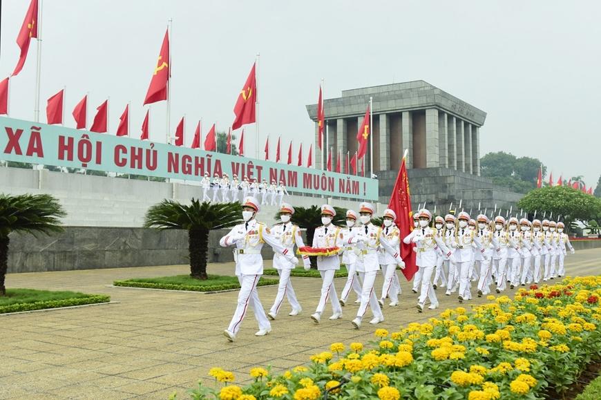 Đội tiêu binh danh dự thực hiện nghi lễ chào cờ hằng ngày trước Lăng Chủ tịch Hồ Chí Minh. Ảnh: ĐÌNH THI