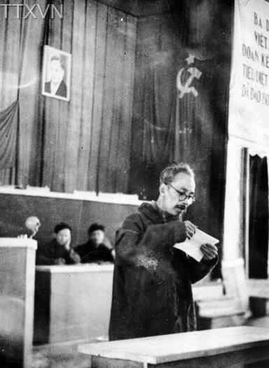 Hồ Chủ tịch đọc "Báo cáo chính trị" tại Đại hội đại biểu toàn quốc lần thứ 2 Đảng Lao động Việt Nam họp ở Việt Bắc tháng 2/1951