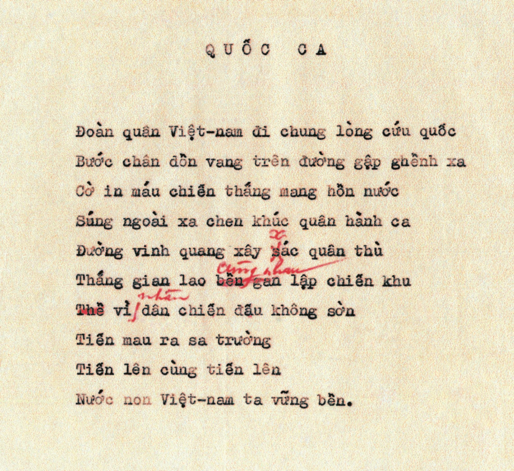Bút tích Chủ tịch Hồ Chí Minh sửa bài “Quốc ca” của nước Việt Nam Dân chủ Cộng hòa