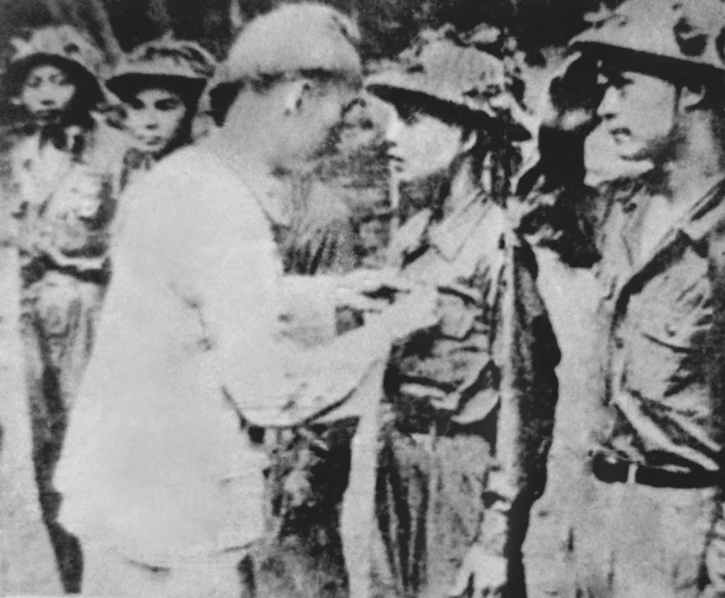 Người thưởng Huy hiệu cho các cán bộ, chiến sĩ lập nhiều chiến công, tham gia chiến đấu ở mặt trận Điện Biên Phủ (5/1954)