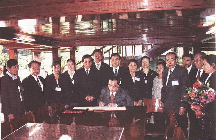 Chủ tịch Quốc hội CHDCND Lào Thoongxinh Thămmavông lưu bút tại Khu di tích Hồ Chí Minh tại Phủ Chủ tịch, ngày 21/11/2006. (Nguồn: Khu di tích Hồ Chí Minh tại Phủ Chủ tịch)