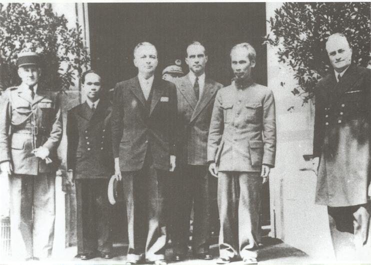 Sau khi ký Hiệp định Sơ bộ ngày 6/3/1946, Chủ tịch Hồ Chí Minh đã chụp ảnh chung với đại diện các nước: Trung Quốc, Anh, Pháp, Mỹ... (Nguồn: Bảo tàng Hồ Chí Minh)
