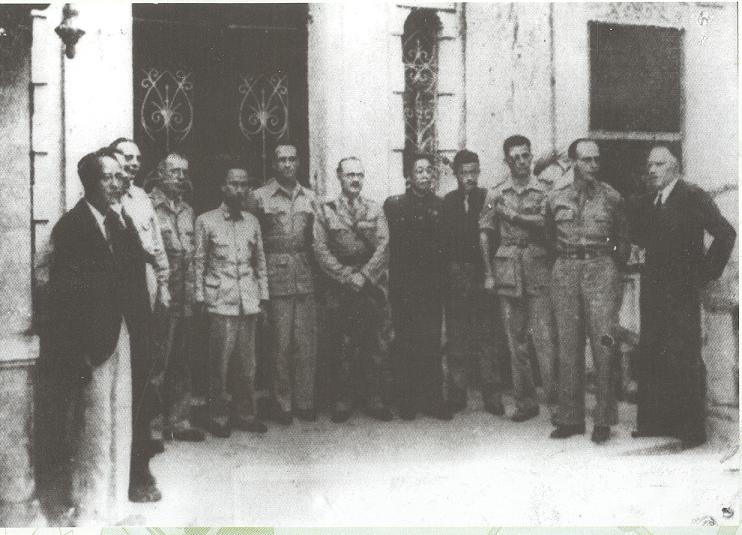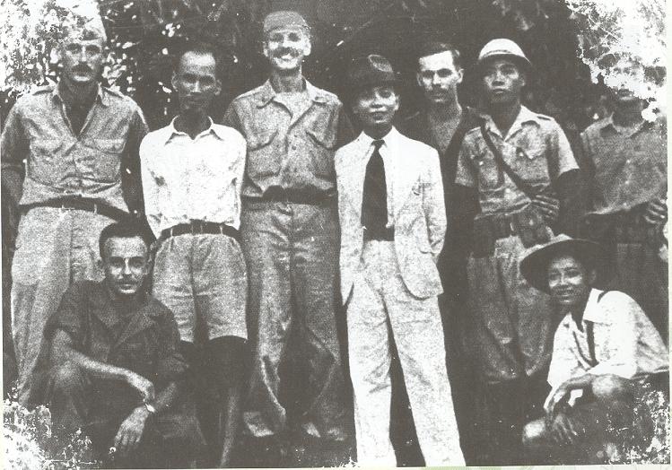 Chủ tịch Hồ Chí Minh cùng các chỉ huy du kích Việt Minh và lãnh đạo biệt đội Con Nai của Mỹ tại chiến khu, năm 1945. (Nguồn: Bảo tàng Hồ Chí Minh)