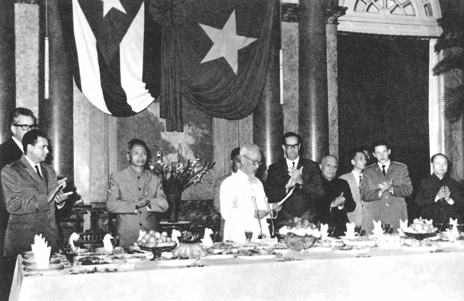 Chủ tịch Hồ Chí Minh đọc diễn văn chào mừng Đoàn đại biểu Chính phủ nước Cộng hòa Cuba do Tổng thống Đoócticốt Tôrađô dẫn đầu sang thăm Việt Nam (29/10/1966)