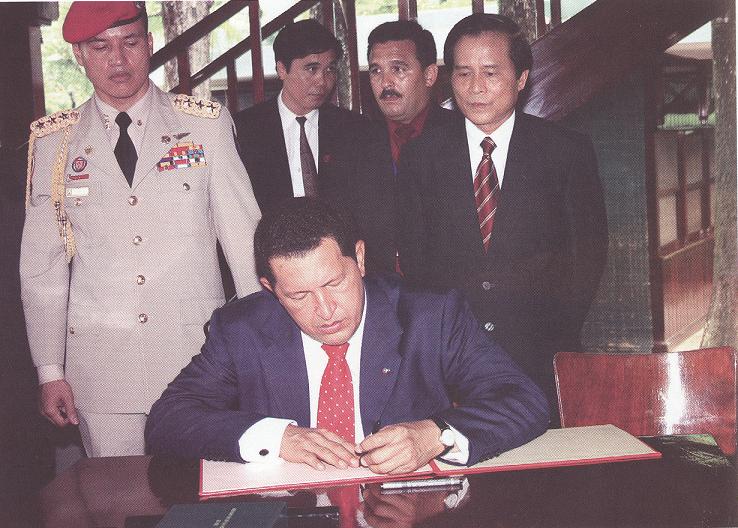 Tổng thống Vênêzuêla Hugô Chavét lưu bút tại Khu di tích Hồ Chí Minh tại Phủ Chủ tịch, ngày 1/8/2006. (Nguồn: Khu di tích Hồ Chí Minh tại Phủ Chủ tịch)