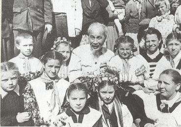 Chủ tịch Hồ Chí Minh với các cháu thiếu nhi tại trại hè Đức – Hung, trong chuyến Người đi thăm Hungari, tháng 8/1957. (Nguồn: Bảo tàng Hồ Chí Minh)
