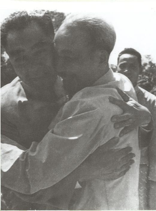 Chủ tịch Hồ Chí Minh ôm hôn Thủ tướng Trung Quốc Chu Ân Lai sang thăm Việt Nam, tháng 11/1956. (Nguồn: Bảo tàng Hồ Chí Minh)