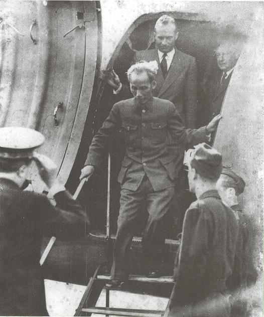 Chủ tịch Hồ Chí Minh trên máy bay bước xuống sân bay Pari, ngày 22/6/1946. (Nguồn: Bảo tàng Hồ Chí Minh)