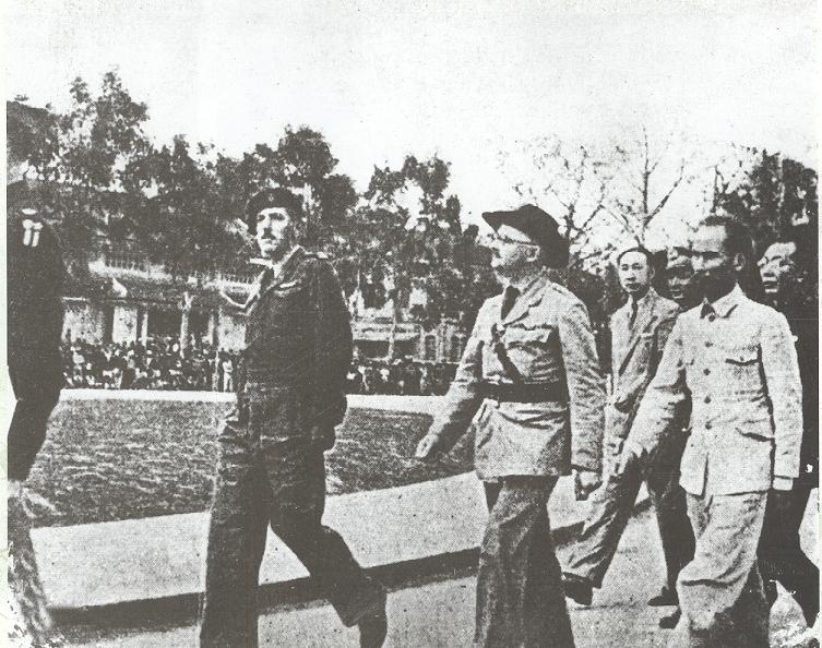 Chủ tịch Hồ Chí Minh tiếp G.Xanhtony – đại diện Chính phủ Pháp và tướng Lơtéc – Trưởng phái đoàn quân sự Pháp, đến chào Người tại Bắc Bộ Phủ, tháng 3/1946. (Nguồn: Bảo tàng Hồ Chí Minh)