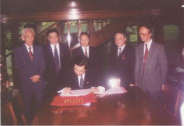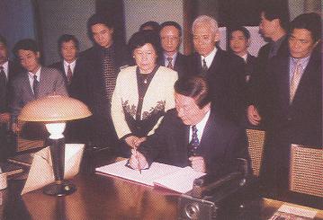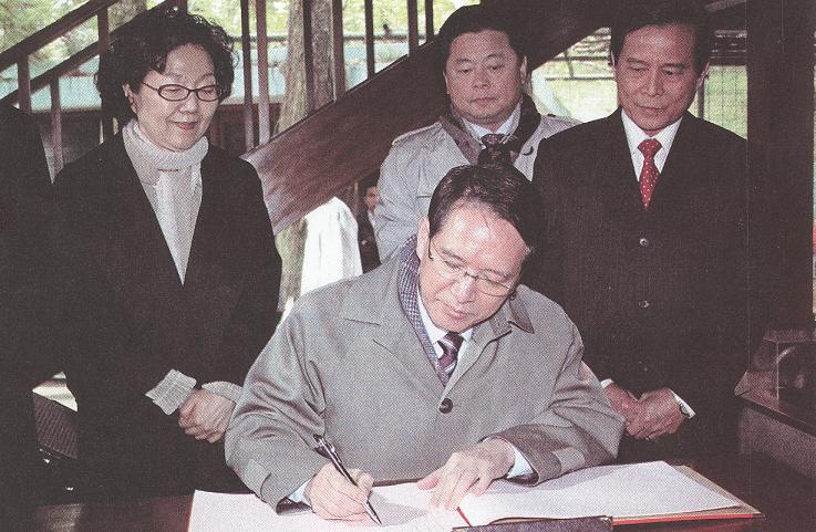 Chủ tịch Quốc hội Hàn Quốc Kim Hyong O và phu nhân lưu bút tại Khu di tích Hồ Chí Minh tại Phủ Chủ tịch, ngày 17/11/2009. (Nguồn: Khu di tích Hồ Chí Minh tại Phủ Chủ tịch)