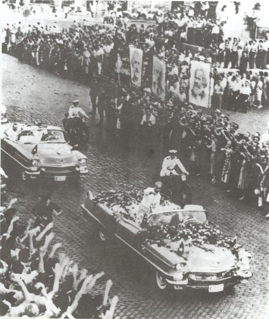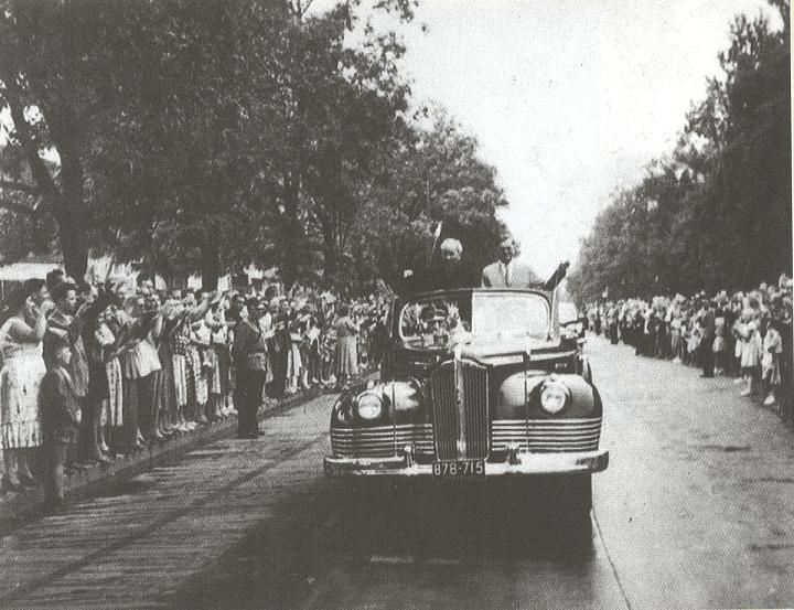 Chủ tịch Hồ Chí Minh thăm Bungari. Đoàn xe hộ tống từ sân bay về thủ đô Xôphia, ngày 13/8/1957. (Nguồn: Tài liệu lưu trữ Bộ Ngoại giao)
