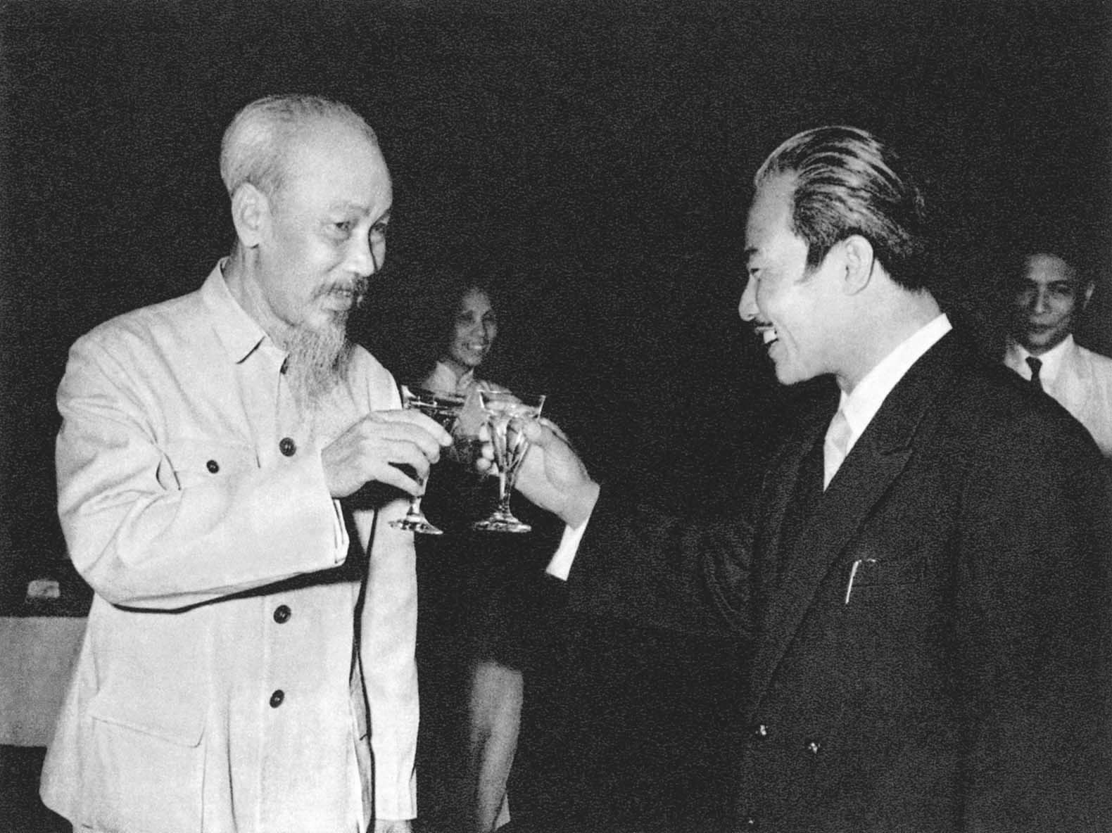 Chủ tịch Hồ Chí Minh và đồng chí Cayxỏn Phômvihản, Chủ tịch nước Cộng hòa dân chủ nhân dân Lào (8/2/1966)