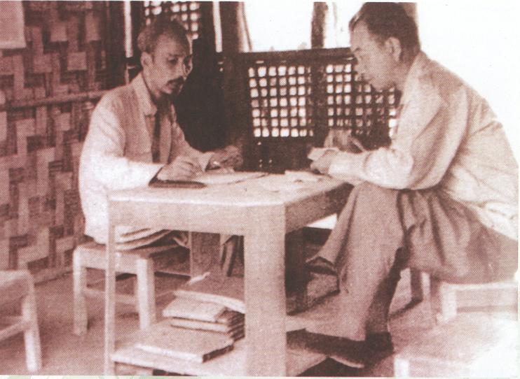 Chủ tịch Hồ Chí Minh và đồng chí Trần Canh, cố vấn quân sự Trung Quốc, tháng 1/1950. (Nguồn: Khu di tích Hồ Chí Minh tại Phủ Chủ tịch)
