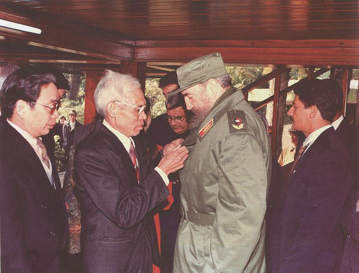 Chủ tịch Cu Ba Phiđen Cátxtơrô thăm Khu di tích Hồ Chí Minh tại Phủ Chủ tịch, ngày 9/12/1995. (Nguồn: Khu di tích Hồ Chí Minh tại Phủ Chủ tịch)