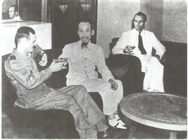 Chủ tịch Hồ Chí Minh tiếp phái đoàn Đồng minh: Mỹ, Anh, Trung Quốc, năm 1945. (Nguồn: Bảo tàng Hồ Chí Minh)