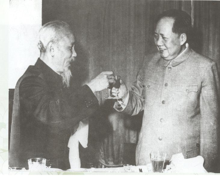 Chủ tịch Hồ Chí Minh và Chủ tịch Mao Trạch Đông nâng ly chúc tình hữu nghị Việt Nam – Trung Quốc mãi mãi xanh tươi – đời đời bền vững, tháng 8/1957. (Nguồn: Bảo tàng Hồ Chí Minh)