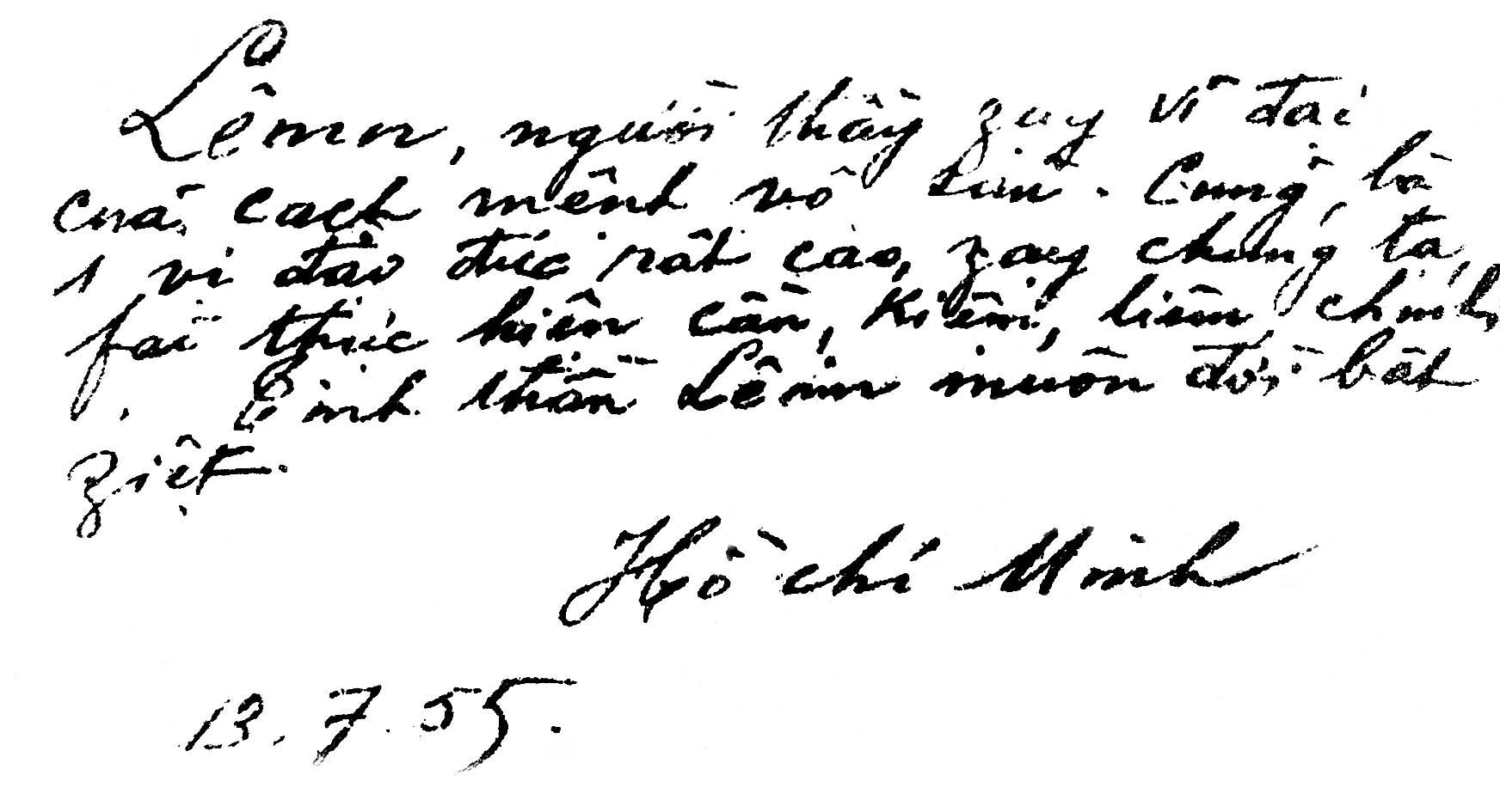 Bút tích của Chủ tịch Hồ Chí Minh ghi trong sổ ghi cảm tưởng trong Điện Kremli, Liên Xô