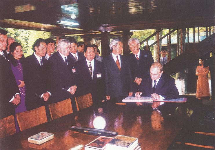 Tổng thống Nga V.Putin lưu bút tại Khu di tích Hồ Chí Minh tại Phủ Chủ tịch, ngày 2/3/2001. (Nguồn: Khu di tích Hồ Chí Minh tại Phủ Chủ tịch)