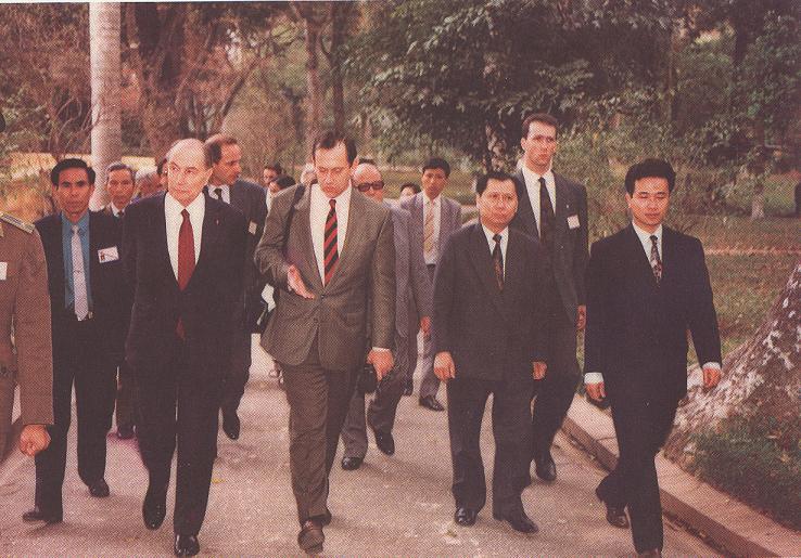 Tổng thống Pháp Phrăngxoa Míttơrăng tham Khu di tích Hồ Chí Minh tại Phủ Chủ tịch, ngày 10/2/1993. (Nguồn: Khu di tích Hồ Chí Minh tại Phủ Chủ tịch)