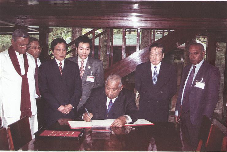 Thủ tướng Sri Lanka Ratnasiri lưu bút tại Khu di tích Hồ Chí Minh tại Phủ Chủ tịch, ngày 28/11/2006. (Nguồn: Khu di tích Hồ Chí Minh tại Phủ Chủ tịch)
