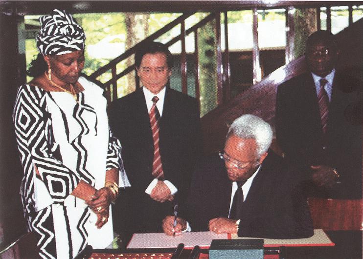 Thủ tướng nước Cộng hòa Thống nhất Tazania Edward Ngoyai Lowassa và phu nhân lưu bút tại Khu di tích Hồ Chí Minh tại Phủ Chủ tịch, ngày 6/9/2006. (Nguồn: Khu di tích Hồ Chí Minh tại Phủ Chủ tịch)