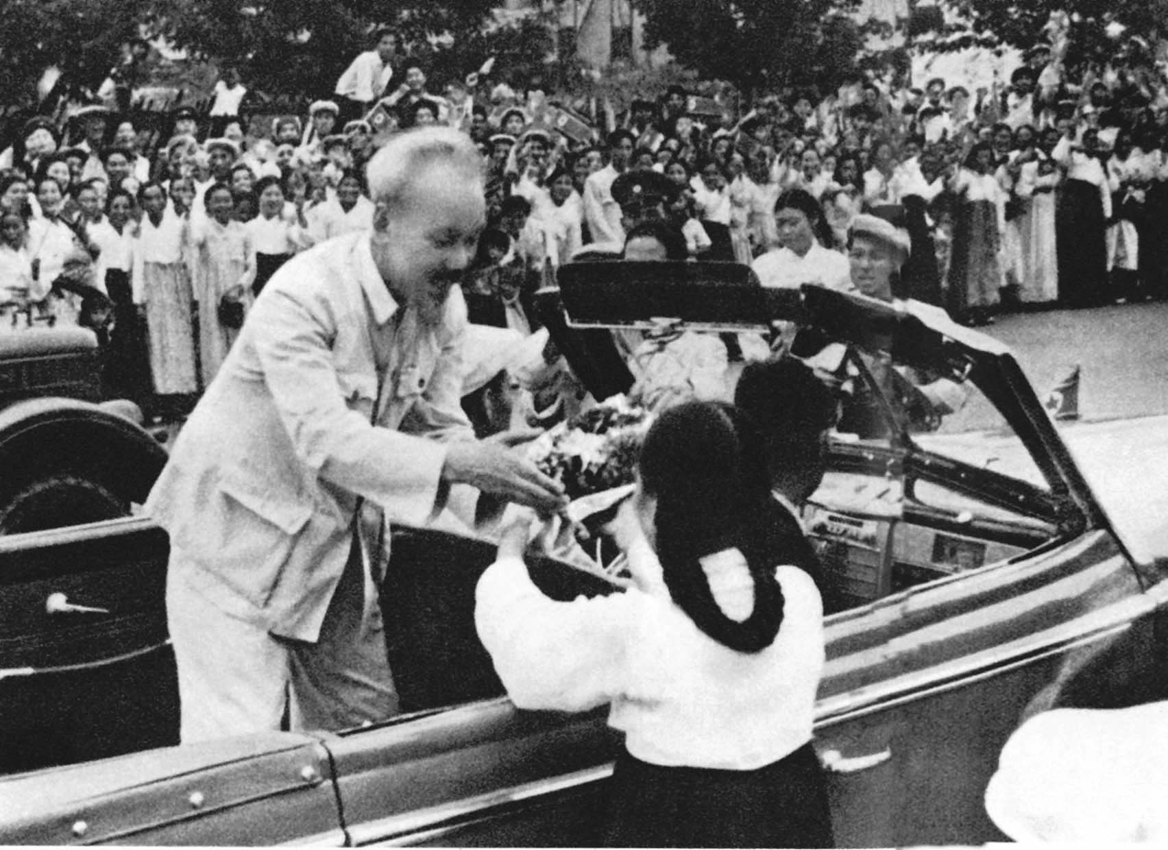 Chủ tịch Hồ Chí Minh thăm Trung Quốc. Quần chúng dâng hoa lên Người, tháng 7/1955. (Nguồn: Tài liệu lưu trữ Bộ Ngoại giao)