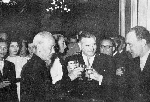 Chủ tịch Hồ Chí Minh gặp gỡ Chủ tịch Tiệp Khắc Dôpôtôtxki, tháng 7/1957. (Nguồn: Tài liệu lưu trữ Bộ Ngoại giao)