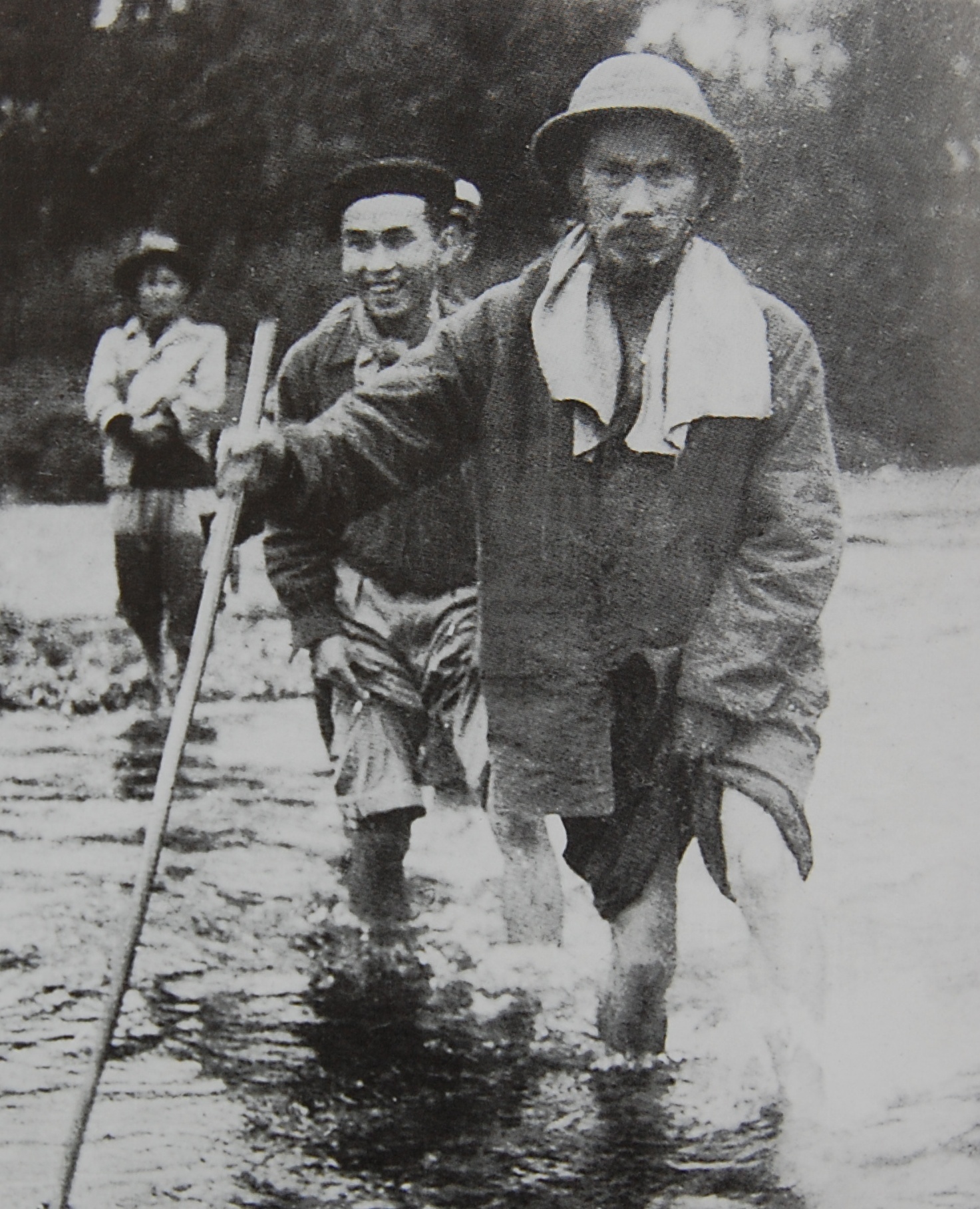 Bác Hồ trên đường đi công tác qua suối Lê Nin, năm 1950
