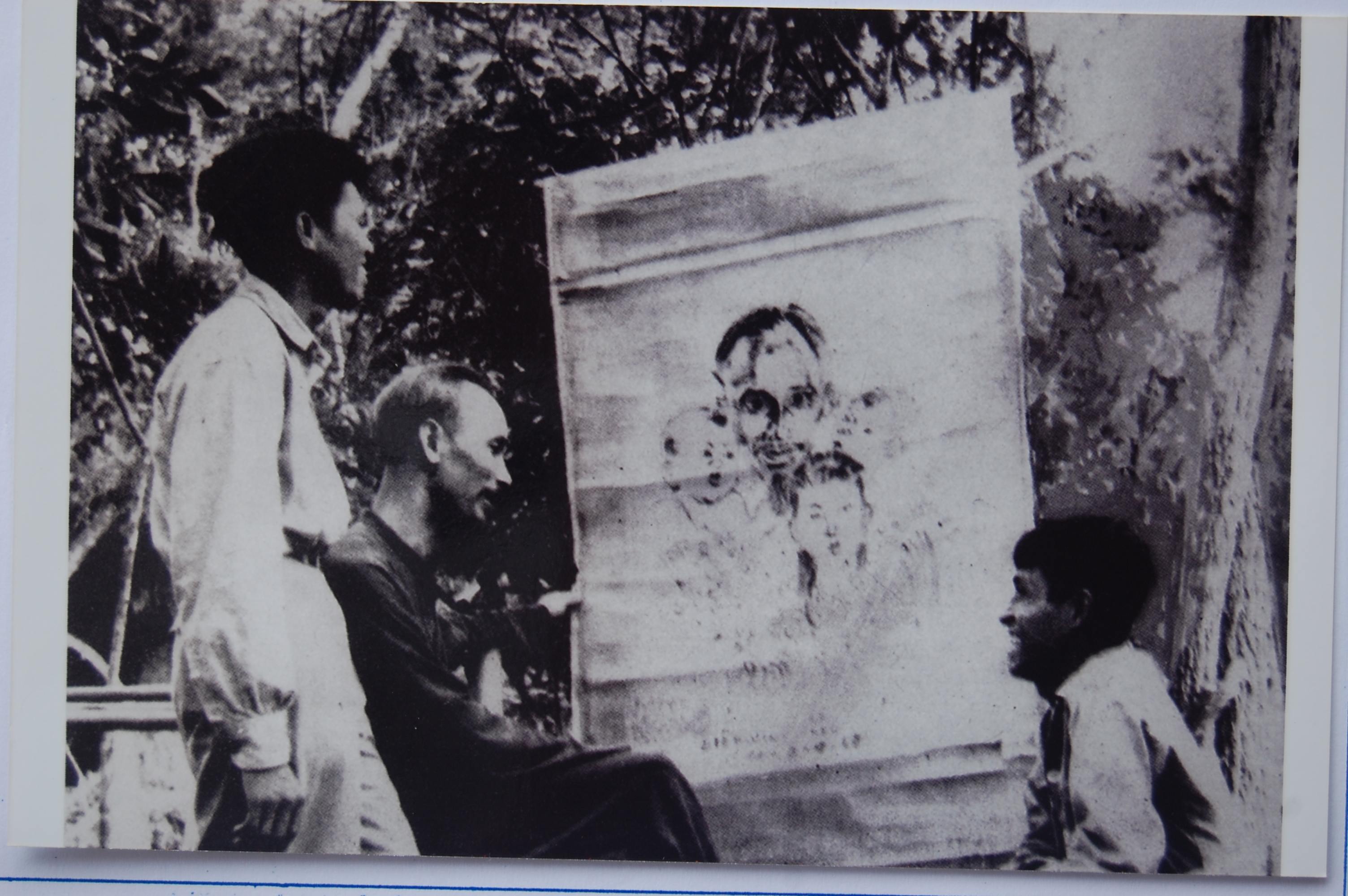 Chủ tịch Hồ Chí Minh đang xem bức tranh do họa sỹ Diệp Minh Châu gửi tặng tại Văn phòng Chủ tịch phủ - Thủ tướng phủ