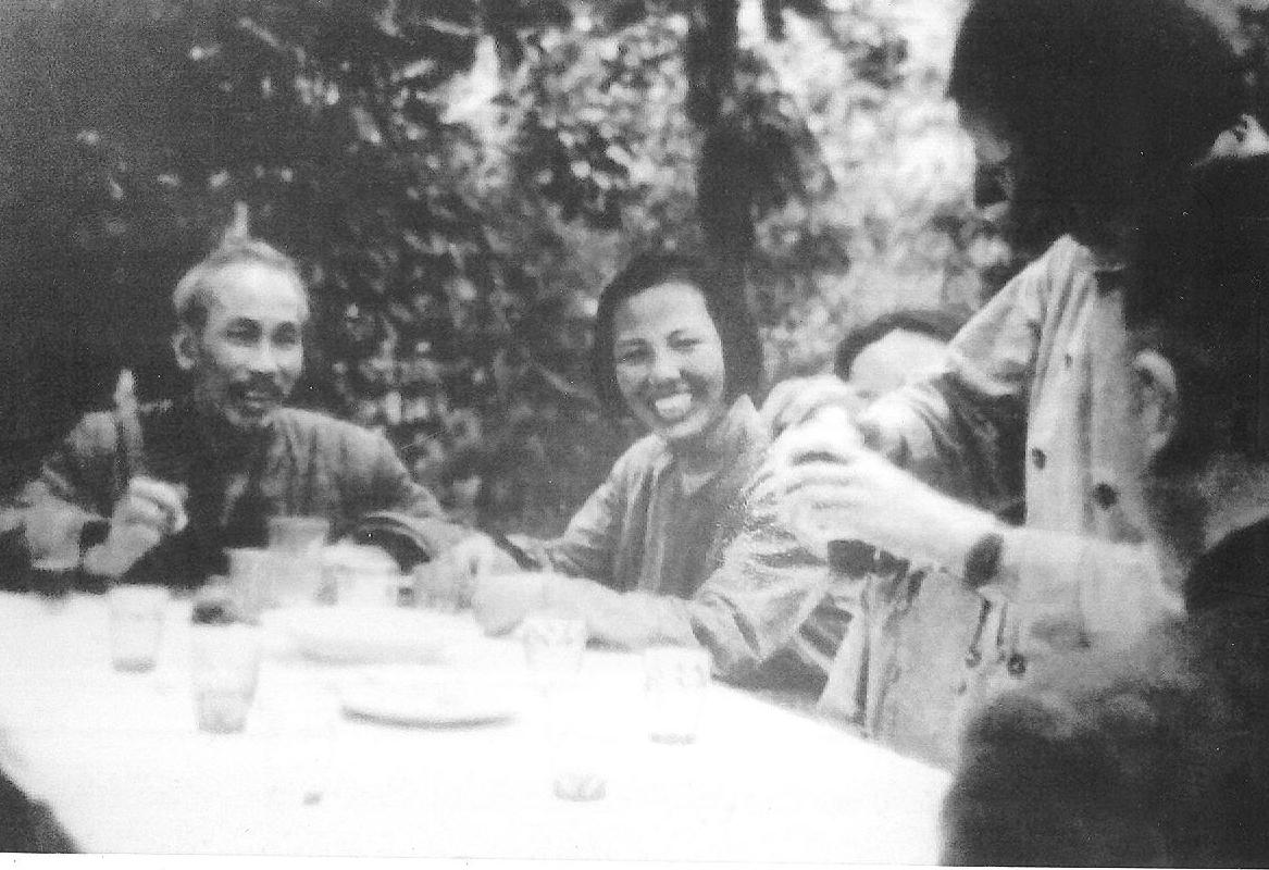 Chủ tịch Hồ Chí Minh tiếp đoàn các nhà báo nữ Trung Quốc đến thăm và chúc Tết Người (đầu năm 1953) tại Việt Bắc
