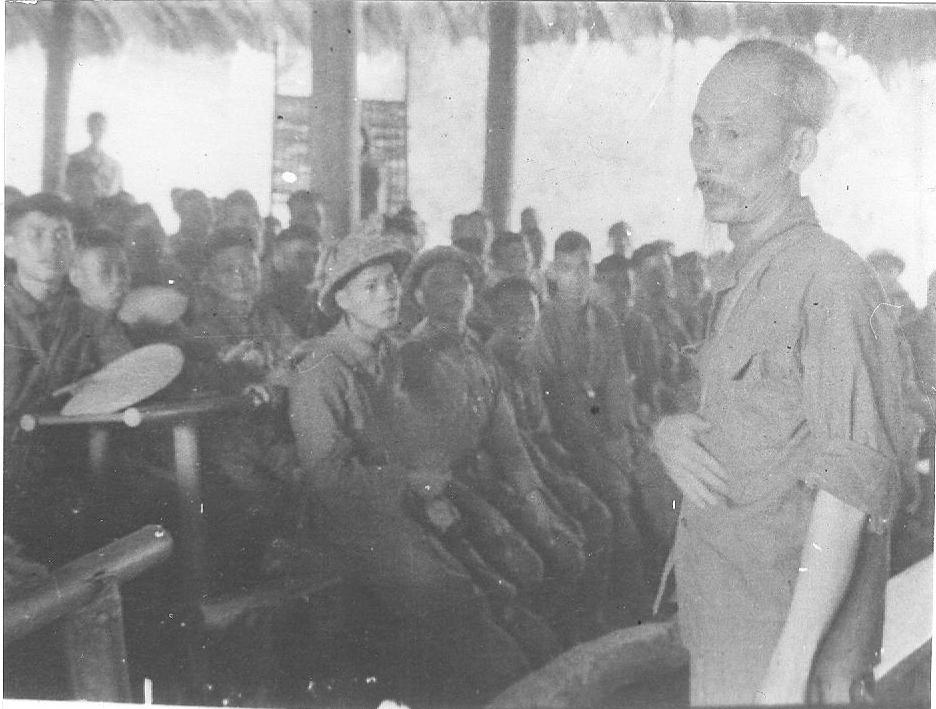 Chủ tịch Hồ Chí Minh nói chuyện với các cán bộ, chiến sỹ đơn vị 600 tại Nà Đỏng - Trung Sơn, 1953