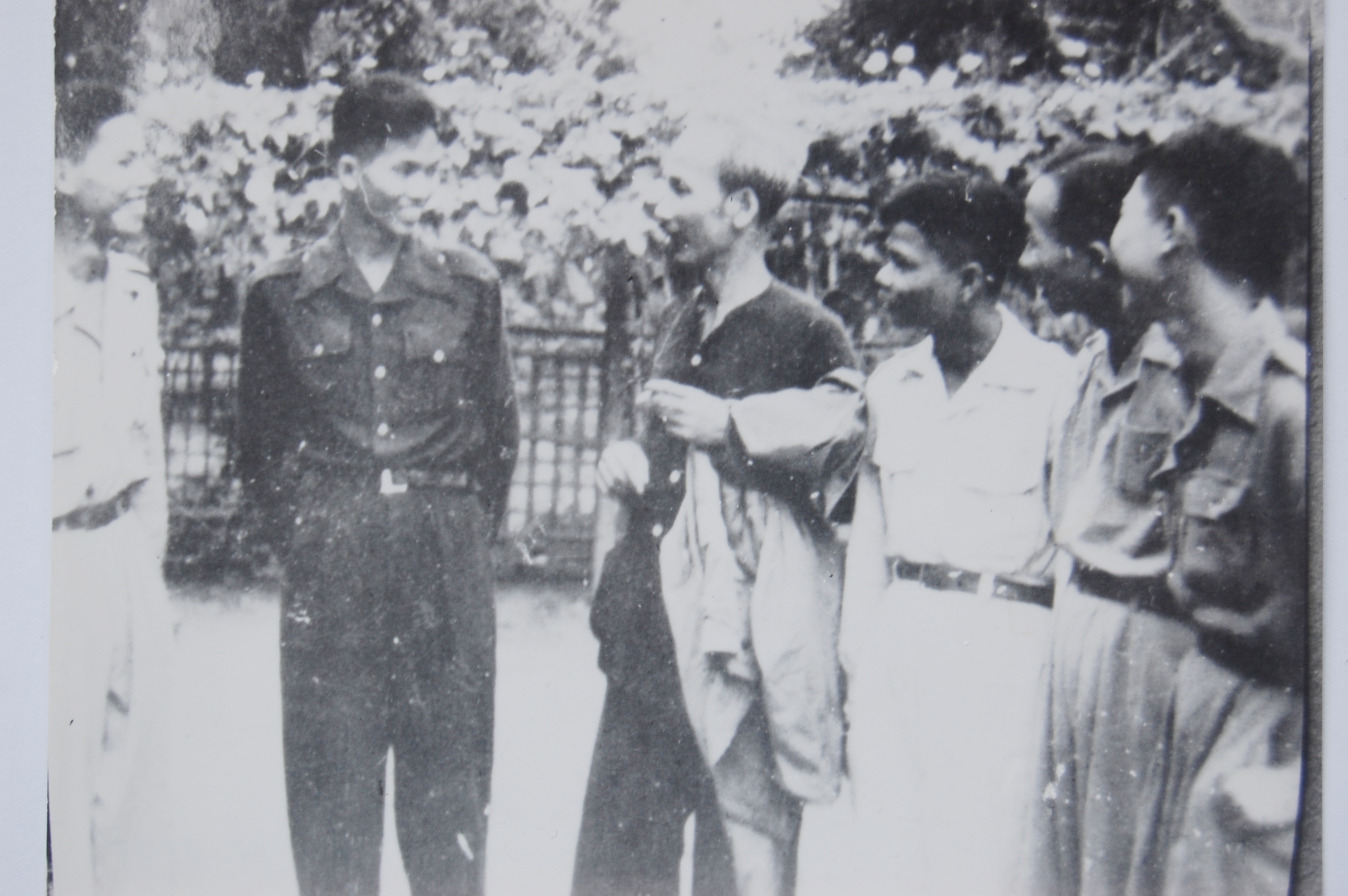 Chủ tịch Hồ Chí Minh, đồng chí Trường Chinh, Phạm Văn Đồng chụp ảnh chung cùng đoàn chuyên gia Trung Quốc tại Nà Ho, năm 1953