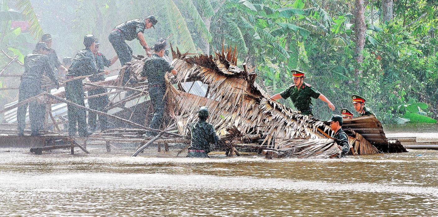Bộ đội giúp dân trong mưa lũ. Nguồn: qdnd.vn