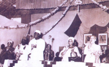 | Chủ tịch Hồ Chí Minh cùng Tổng thống Mali Môđibô Câyta đến thăm Trường Đại học Sư phạm Hà Nội (ngày 21/10/1964). (Ảnh tư liệu) |