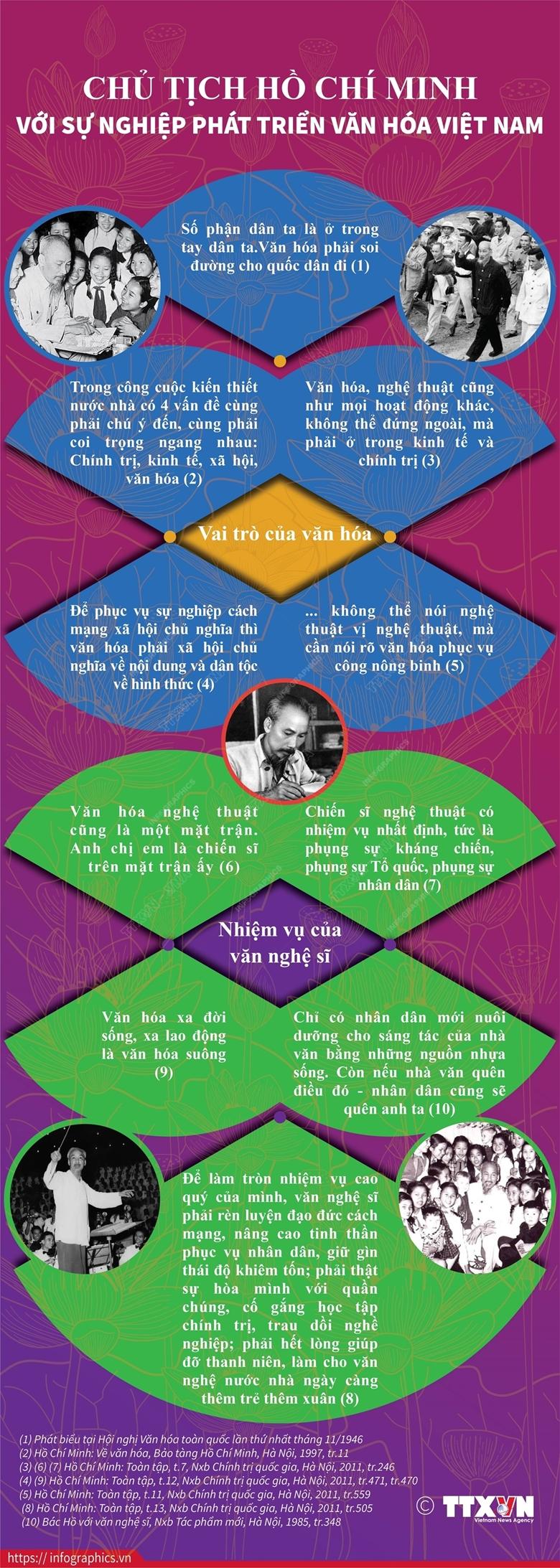 Thứ tư, 24/11/2021 | 16:35 A- A A+ | Chủ tịch Hồ Chí Minh với sự nghiệp phát triển văn hóa Việt Nam Quan điểm, tư tưởng về văn hóa nghệ thuật của Hồ Chí Minh luôn luôn có ý nghĩa định hướng cho việc xây dựng nền văn hóa, văn nghệ cách mạng Việt Nam. Nguồn: TTXVN hochiminh.vn Bình luận Email* Ý kiến của bạn* Nhập lại Gửi Các tin khác Bác Hồ với dân chủ và bài học về đạo đức cách mạng Giải phóng con người - Triết lý nhân văn, phát triển trong tư tưởng Hồ Chí Minh và việc vận dụng sáng tạo trong kỷ nguyên phát triển mới Thực hành dân chủ trong Đảng theo tư tưởng Hồ Chí Minh - Ý nghĩa đối với công cuộc xây dựng, chỉnh đốn Đảng hiện nay Thực hiện đại đoàn kết toàn dân tộc trong thời kỳ mới theo tư tưởng Hồ Chí Minh Xây dựng con người “Thủ đô xã hội chủ nghĩa” như mong muốn của Chủ tịch Hồ Chí Minh Tư tưởng Hồ Chí Minh soi đường cuộc cách mạng tinh gọn bộ máy - Bài 2: Không thể phủ nhận và xuyên tạc cuộc cách mạng tinh gọn bộ máy Tư tưởng Hồ Chí Minh soi đường cuộc cách mạng tinh gọn bộ máy - Bài 1: Quan điểm Hồ Chí Minh về tinh gọn bộ máy Tuyên ngôn Độc lập - bản hùng ca khẳng định quyền độc lập, tự chủ của dân tộc Việt Nam Đảng lãnh đạo dân tộc làm nên Cách mạng Tháng Tám và 80 năm xây dựng Đảng cầm quyền vững mạnh Xây dựng con người “Thủ đô xã hội chủ nghĩa” như mong muốn của Chủ tịch Hồ Chí Minh Phong cách nêu gương Hồ Chí Minh - Sức lan tỏa trong thực hiện quy định nêu gương của người đứng đầu tổ chức, cơ quan, đơn vị hiện nay Tư tưởng Hồ Chí Minh về “Hạnh phúc” và dựng xây Việt Nam hạnh phúc trong kỷ nguyên phát triển mới, kỷ nguyên vươn mình của dân tộc Vận dụng phong cách làm báo của Chủ tịch Hồ Chí Minh trong kỷ nguyên mới