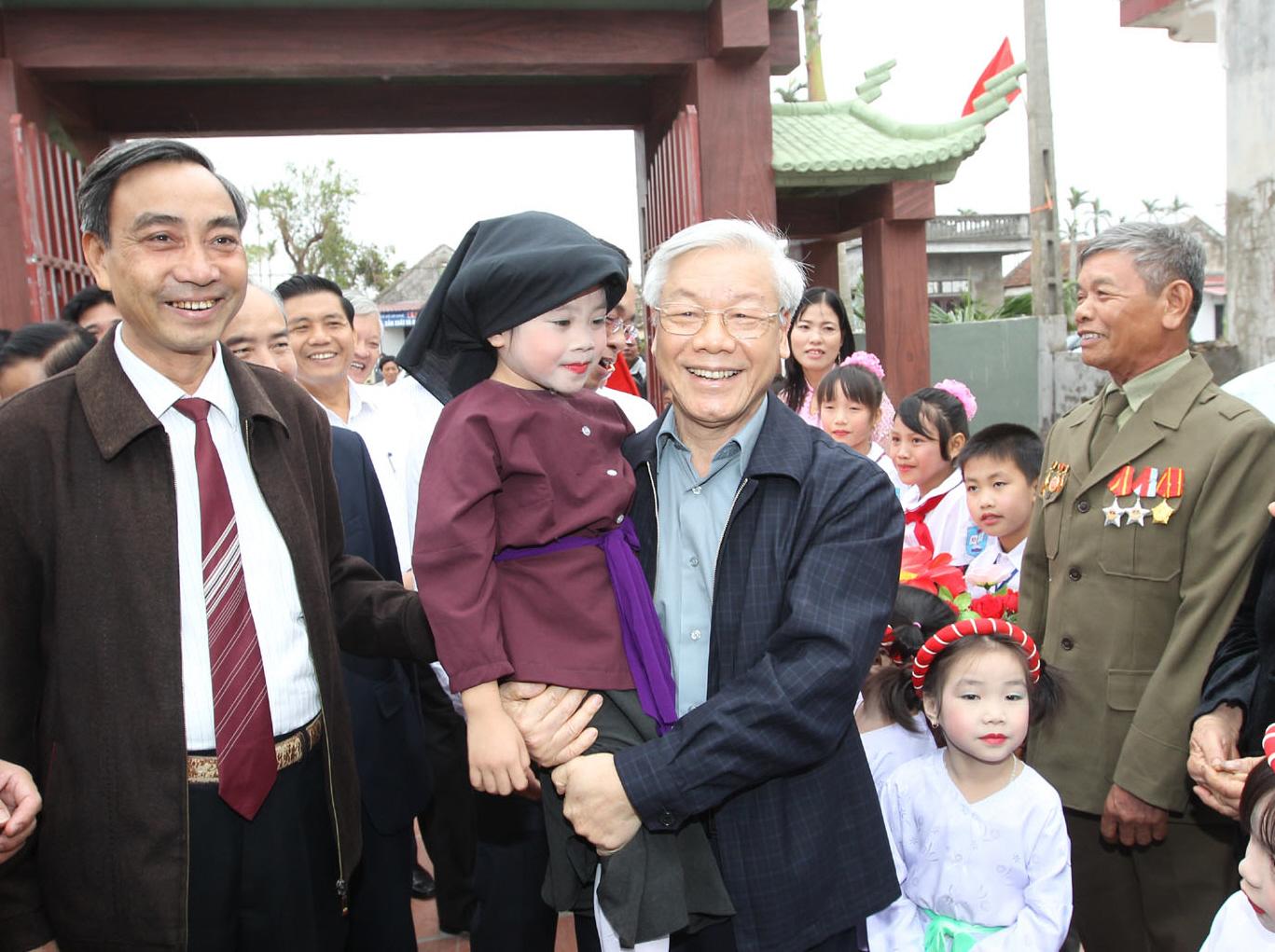 Đoàn kết toàn dân tộc là điều kiện không thể thiếu, là đòi hỏi tất yếu để giữ gìn nền độc lập của quốc gia và quyền tự do vững bền cho dân tộc (Trong ảnh:Tổng Bí thư Nguyễn Phú Trọng tham dự Ngày hội đại đoàn kết toàn dân tộc tại khu dân cư xóm 4, xã Hải Bắc, huyện Hải Hậu, tỉnh Nam Định) . Ảnh: TTXVN