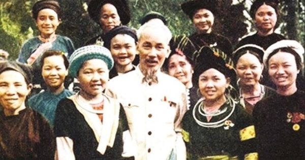 | Bác Hồ với các phụ nữ dân tộc thiểu số (ảnh tư liệu) |
